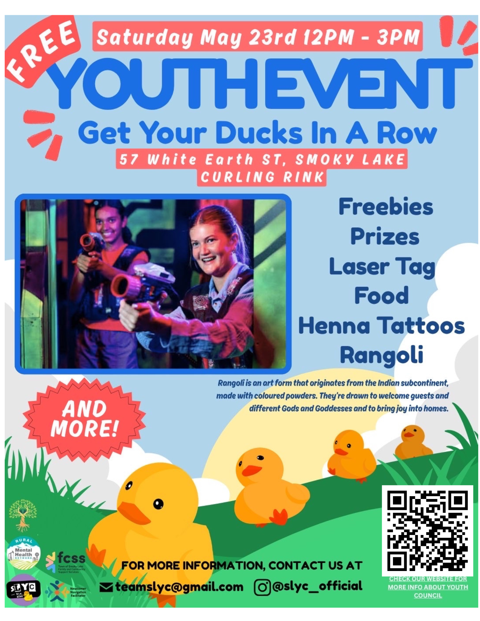 Youth Mental Health Festival – Get Your Ducks In A Row! When: Saturday, May 23, 2026 at 12:00 PM to Saturday, May 23, 2026 at 3:00 PM Youth Event